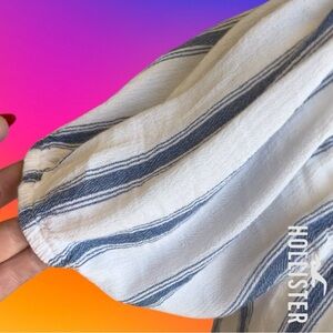 Chic blouse with blue and white stripes. Button-up front. Short sleeves. Perfect for casual outings