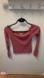 Chic burgundy blouse with white stripes. Long sleeves and ruffled edges. Ideal for casual wear.
