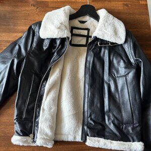 Hollister black leather jacket / bomber with faux fur collar and lining