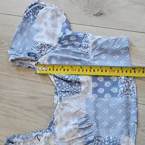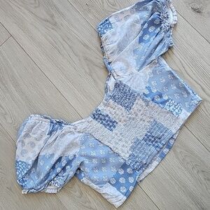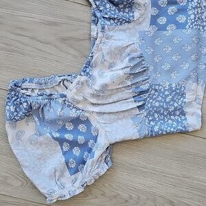 Hollister Peasant Style Crop Top with Short Balloon Sleeves that have a Small Ruffle Trim. Patchwork Paisley Print giving subtle western cowgirl vibes. smocked back. super lightweight, soft, and breatheable fabric. perfect for summer weather & rodeo / stampede !