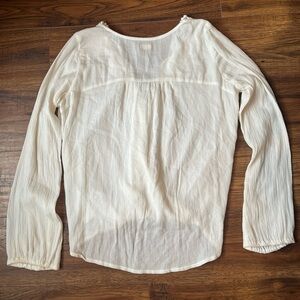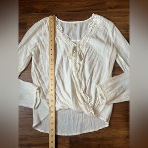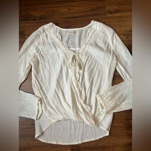 Hollister Cream Lightweight Long Sleeve Blouse Lace Boho Coastal Preppy XS