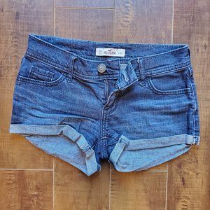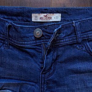Cuffed, mid-rise dark blue denim jeans. Measurements pictured for reference.