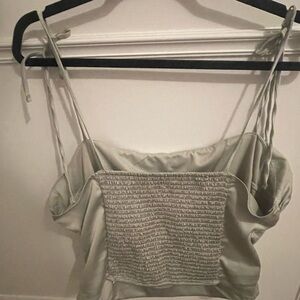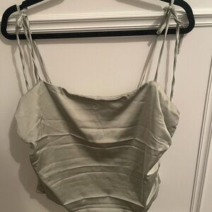 This sleeveless camisole from Hollister features a stylish ruched design with a tie front, offering a chic and modern look. The crop top is crafted in a beautiful green hue, perfect for adding a pop of color to your outfit. Its adjustable straps ensure a comfortable fit, making it a versatile addition to your wardrobe.