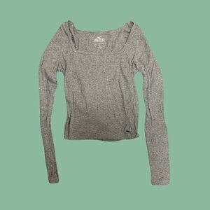 Hollister Grey Ribbed Square Neck Long Sleeve | Must-Have Collection | Size S