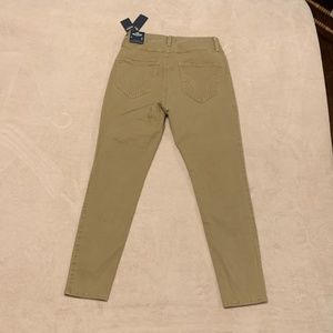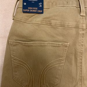 I am selling this new pair of Hollister High Rise Super Skinny Crop Pants in size 5R, colour tan. W27, L26. NEW WITH TAGS.