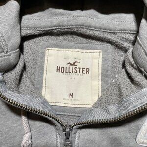 This Hollister zip-up hoodie is a cozy, casual staple perfect for layering year-round. Made from soft gray fabric with a relaxed, baggy fit and a classic front patch logo, it’s ideal for everyday wear, school, or lounging. The zip front makes it easy to throw on and go.