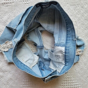 Hollister Light Wash Raw Hem, Lace Trimmed Jean Shorts