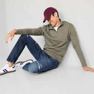 Classic slim straight men's jeans with Hollister's Epic Flex stretch for all-day comfort. These jeans feature a mid-rise waist, a relaxed fit through the thigh, and a straight leg for a timeless, versatile look. The dark wash denim is enhanced with light distressing for a laidback, worn-in feel.