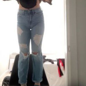 Light wash denim hollister jeans waist 23 and short length these pair great with any outfit and are super strenchy!!