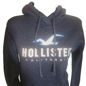 Hollister Navy Blue Pullover Logo Front Hoodie XS