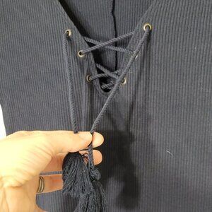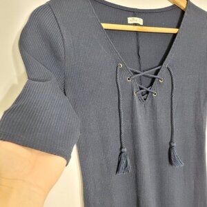 Hollister Navy Blue Ribbed Knit Cotton Blend V-Neck Pullover Dress Size XS
