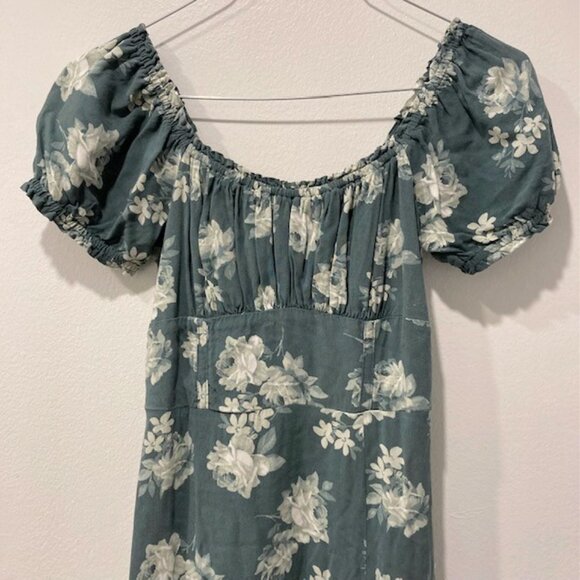 Hollister On or Off the Shoulder Floral Green & White Midi Dress with Split Hem