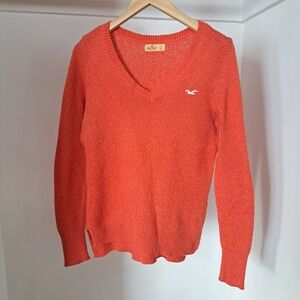 Hollister | Orange & hint of pink knit womens v neck long sleeved sweater . women's size small