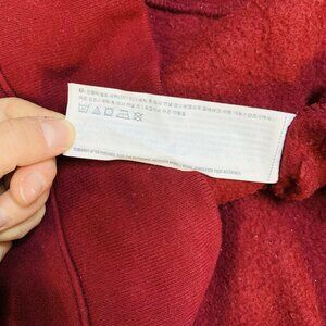 Stylish dark red hoodie with Hollister branding. Comfortable fit. Perfect for casual wear.