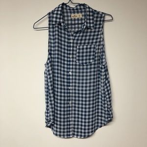 Hollister Sleeveless Long Plaid Button Up Blouse Size XS
