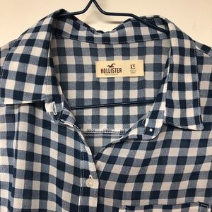 Hollister Sheer Sleeveless Long Plaid Button Up Blouse
