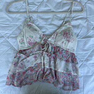 Hollister spaghetti strap v neck tiered top - pink floral print in size XS
