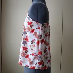 Bright but subtle floral pattern with oranges, greens, and beiges