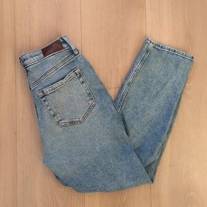 Relaxed through the thigh and tapered from knee to ankle, these throwback mom jeans by Hollister feature Vintage Stretch denim in a medium wash with ripped knees.