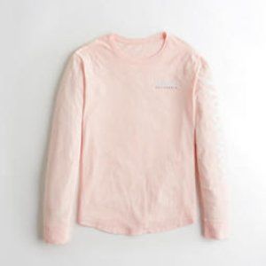 Super soft baby pink long sleeve from Hollister with velvet graphics in white and black. Very lightweight.