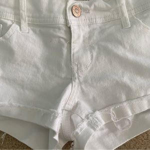 Low rise distressed short short. Excellent pre owned condition nice and white. Please see photos. Juniors 3/26” waist