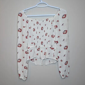 Hollister White Floral Red Button Down Square Flowy Cropped Top Women XS