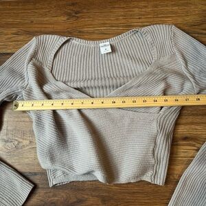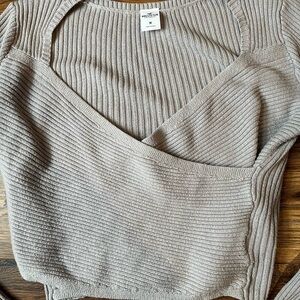 Hollister Womens Beige Grey Ribbed Knit Crop Wrap Sweater Medium Casual
