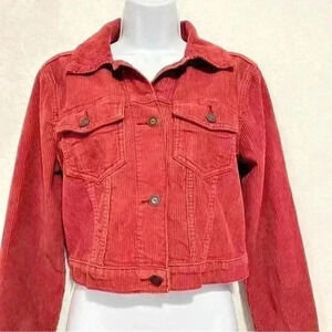 Hollister Women's Corduroy 100% Cotton Cropped Jacket Wine Red Size M