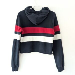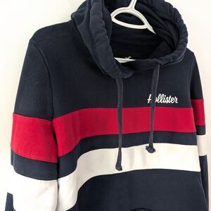 Embrace a sporty look with this Hollister Cropped Hoodie, featuring a clean design with bold white and red stripes across the chest. This top combines comfort and style with its cropped, oversized fit and soft fabric, making it perfect for casual outings.