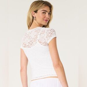 Hollister white floral lace slim fit baby tee with camisole- NWT- size M