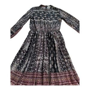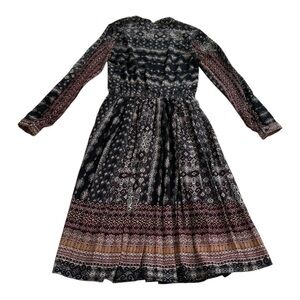 Holly Bracken Midi Dress Long Sleeves Crew Neck Printed Gray Black Womens S/M