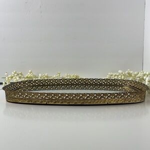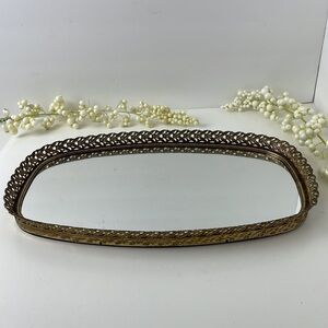 Vintage tray had wear from age, some tarnish in places on the detailed filigree work around edges of the mirror