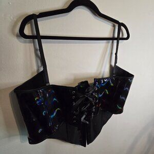 Holographic Black Gloss Under Bust Corset - Women's Plus Size 2X - Sexy