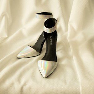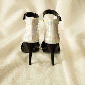 Razzle dazzle and all that jazz! These shoes not only make a statement with their holographic sheen, but they also go with virtually any outfit, too! I received these secondhand and wore them only once for an event years ago. There are some scuff marks (see pictures for details), yet other than that, these shoes are in good condition and ready for more parties!