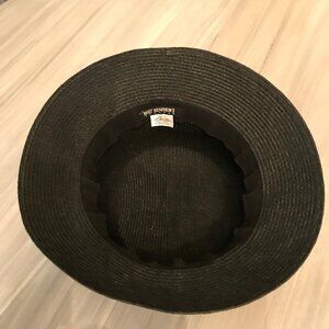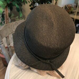 Sun hat with a tie bow around the base. The brim measures 2.5". The hat diameter is 7"