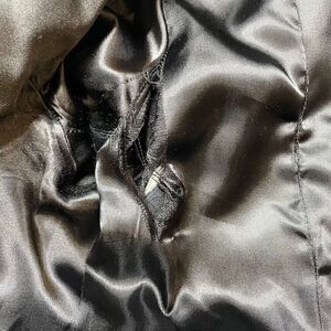Excellent condition. No flaws on the exterior. Except for a tear in the interior lining of armpit area, but not visible when worn, doesn't affect function of the garment at all.