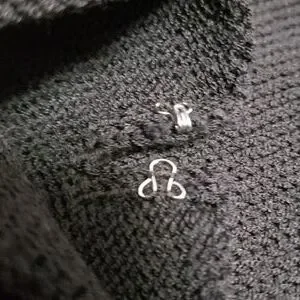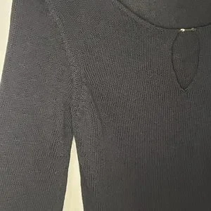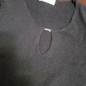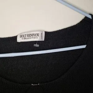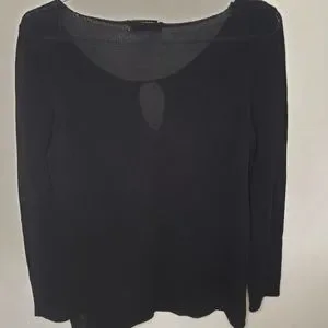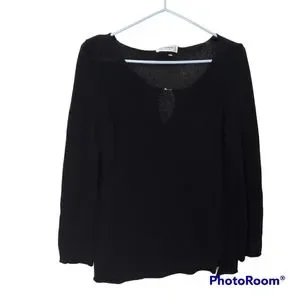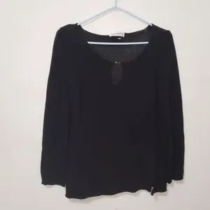Holt Renfrew Ribbed sweater with keyhole design. Black color and size Medium. 2 side slits with hook-and-eye closure. Sleeves have slits with hook-and-eye closure too. Used and in great condition.