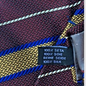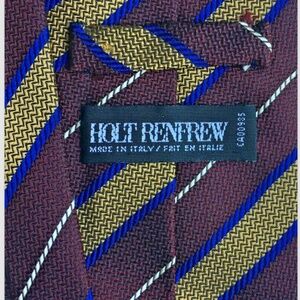 Holt Renfrew maroon & gold striped textured Silk Tie.Handmade in Italy 🇮🇹
