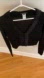 Soft black merino wool cardigan with silk ruffle on front from Nanette Lepore bought at Holt Renfrew.