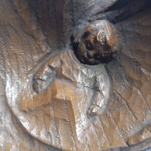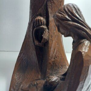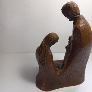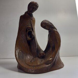 Holy Family Religious Woodgrain Statuette Vintage Resin Dk. Mid Century 1960s