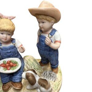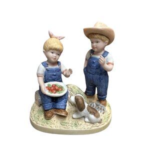 Homco 1985 Denim Days Debbie Danny Puppy Dog Apples Porcelain Figurine