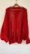 Home knit. Tomato red. Great knit pattern. It’s like a scarf with sleeves on the end. A wonderful shrug. Open knit. Great condition. Flexible sizing. I think this would work for medium to xxl.