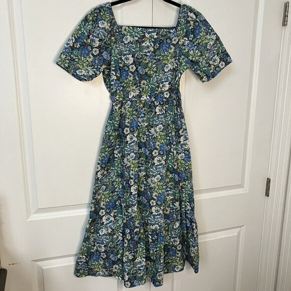 Homemade Floral Midi Dress Womens Cottagecore Prairie Tiered Blue Hyacinth