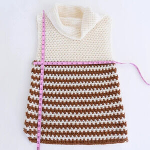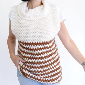Homemade HANDKNIT Turtleneck Cowl Neck Tunic Vest Cream and Brown Woman's