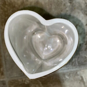 Homemade UFC Brand White Heart Shaped Vase Made in 1982 Japan with Gold Rim Rare