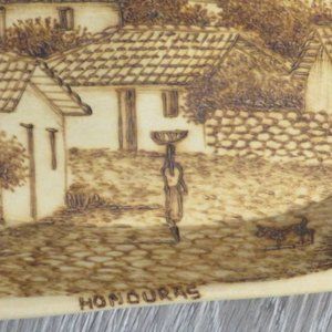 Honduras Burnt Wood Wall Art Village Scene Plaque (K238)