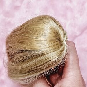 15" synthetic ponytail hair piece clip on features a honey blonde with low lights mixed in. Clip also comes with drawstring to tighten & secure its hold. Hair also has a cute flip at the end, making it even more of a beauty!