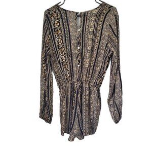 Honey Punch Black and gold Pattern Long Sleeve Romper