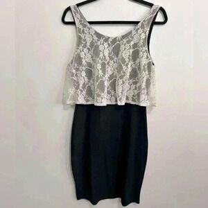 Honey Punch Women’s black 2 - in 1 Lace Overlay bodycon dress size M