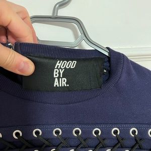 An awesome Hood By Air Laced-up Navy Sweatshirt Size Medium.